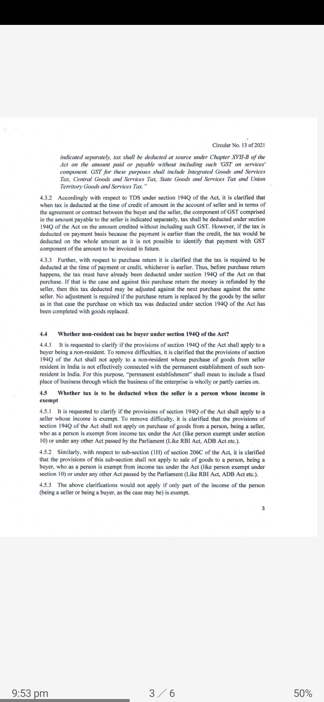 Refer YouTube video link on Guidelines under section 194Q of the Income-tax Act, 1961Circular No. 13 of 2021 | Dated: 30th June, 2021 https://www.youtube.com/watch?v=STkfUwABAtc