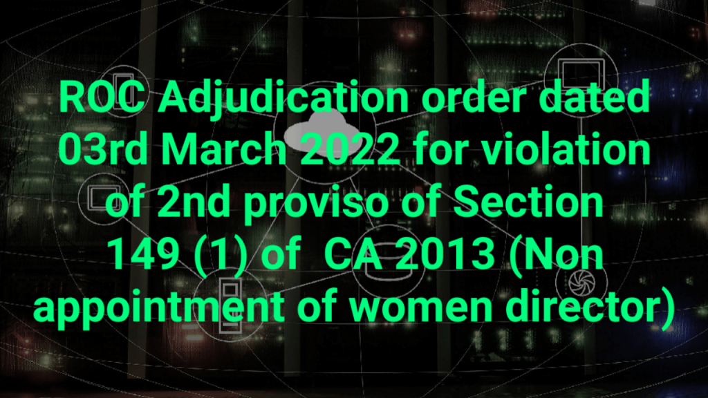 ROC Adjudication order dated 03rd March 2022 for violation of 2nd proviso of Section 149(1) of CA 2013 (Non appointment of women director)