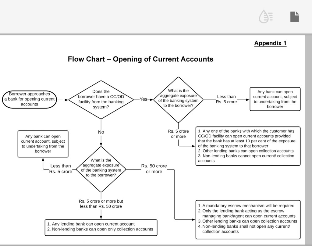 1. Opening of Current Accounts for borrowers availing Cash Credit/ Overdraft Facilities from the Banking System