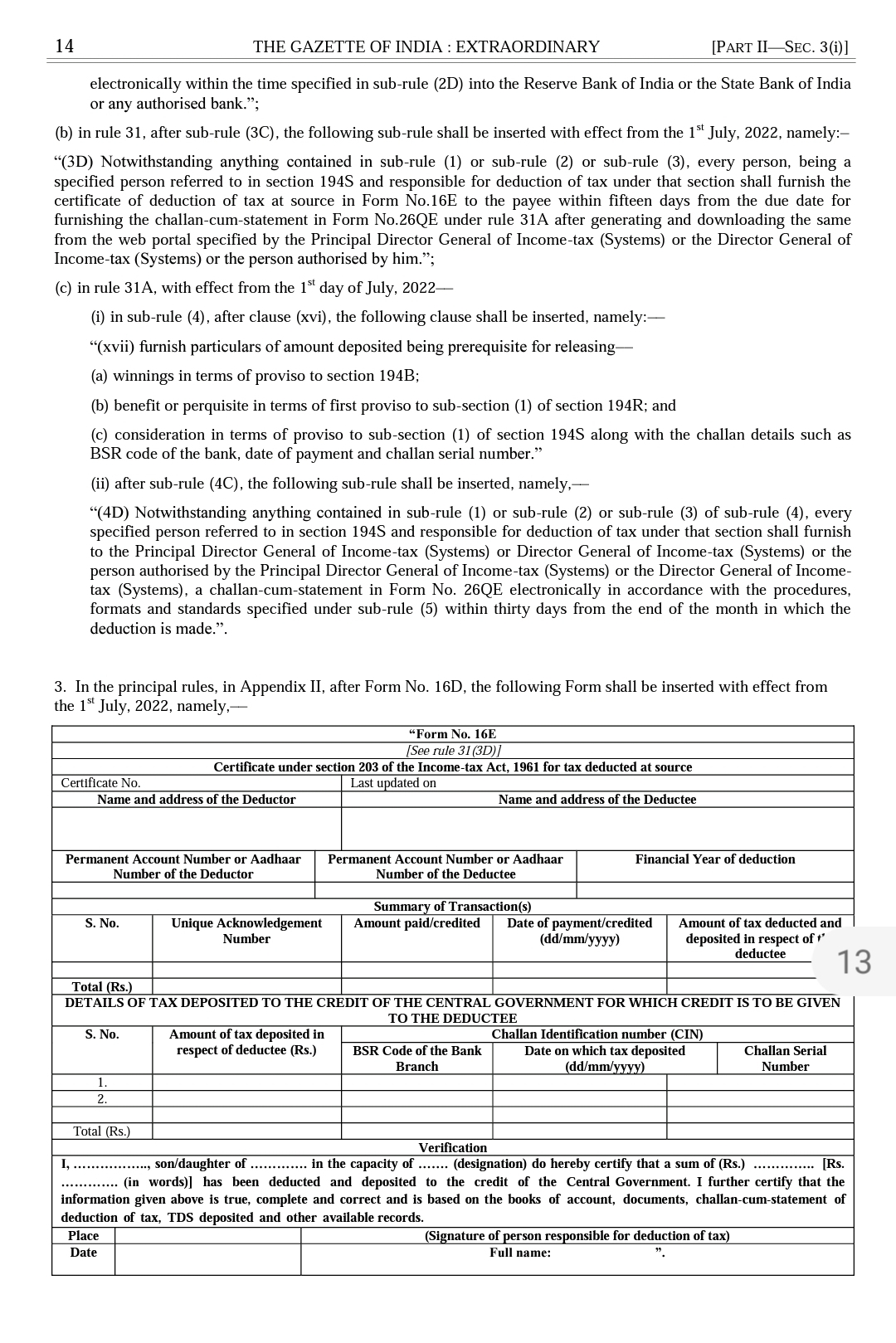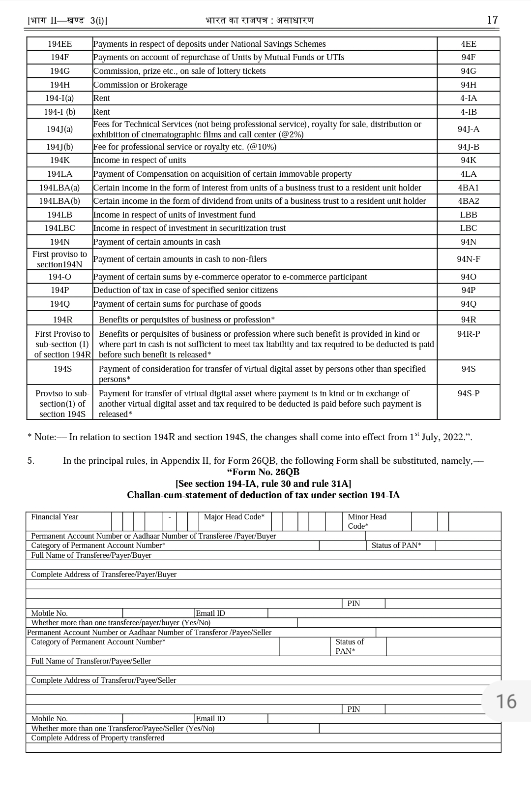 CBDT notified Challan cum Statement u/s 194S (Form no. 26QE) (CBDT Notification dated 21st June 2022).