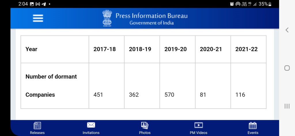 Section 248 of the Companies Act, 2013 (the Act) provides for removal of name of company from the Register of companies, if it is not carrying on any business or operation for a period of 2 immediately preceding financial years and has not made any application within the said period for obtaining the status of a Dormant Company under section 455 of the Act. This was stated by the Union Minister of State for Corporate Affairs Shri Rao Inderjit Singh in a written reply to a question in Lok Sabha today.